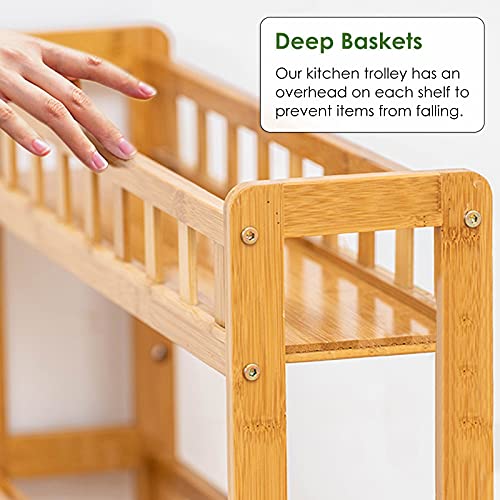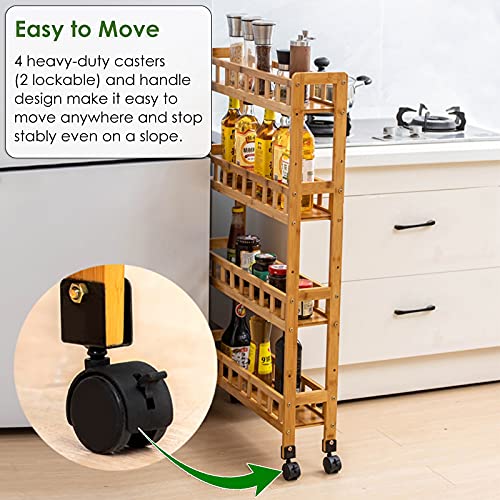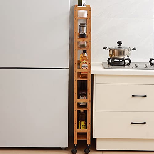 Trolley on Wheels,15cm Wide Kitchen Narrow Rack Tower, Bamboo Extra Tall & Slim Bathroom Organizer Cart On Wheel, Slim Slide Out Laundry Room Trolleys