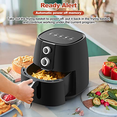 TUKAILAI 3.8L Air Fryer Rapid Air Circulation 1450w For Home Use Dual Knob Control With 30 Min Timer, 200℃ Adjustable Temperature Control, Healthy Free/Low Oil Cooking, Dishwasher Safe Frying Basket