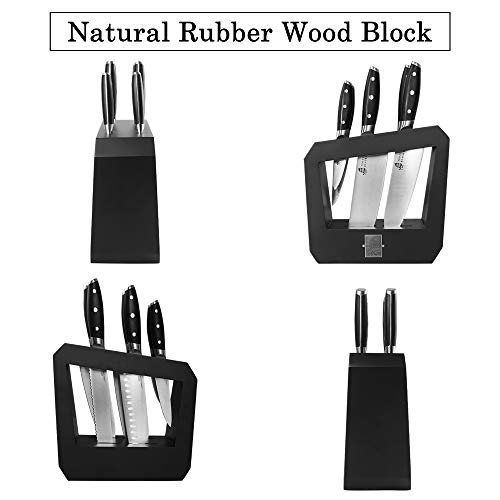 - 🎃【UNIQUE KNIFE BLOCK EASY TO STORE】All knives store safely in the natural wood knife block for space efficient storage. The beautiful BLACK HAWK knife set to completement your kichen,look great among your kitchen. Natural Rubber wood is less prone to bending and deformation, its unique decorativ is popular by more and more people.
