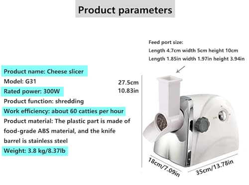 TYXFSMYXGS Commercial Electric Cheese Grater with 3 Stainless Steel Blades, Rotary Shredder Machine for Quick 1min/500g Shredding, Multi-Functional Slicer for Cheese, Vegetables, and Fruits Type A