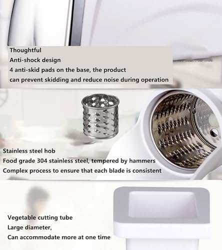 - 【3 INTERCHANGEABLE BLADES】Comes with 0.1in, 0.2in, and 0.27in stainless steel cutting drums, allowing fine to coarse shredding of parmesan, mozzarella, potatoes, carrots, and more to suit diverse recipes.