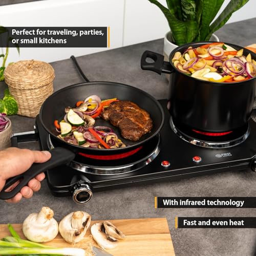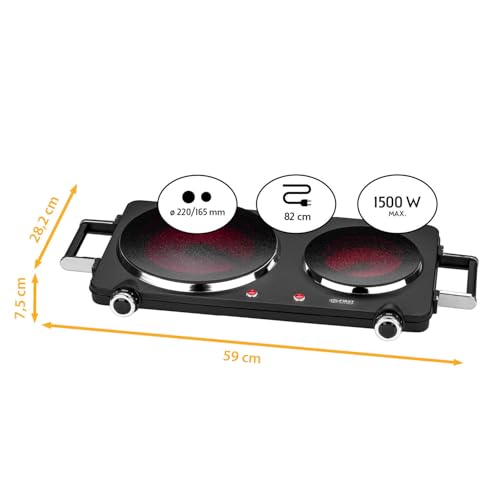 - COMPACT & FLEXIBLE: This electric double hotplate with handles is perfect for meal preparation. It fits all cookware with its two distinct diameters of 22 & 16.5 cm.