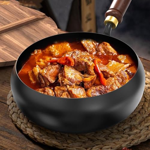 - 【Satisfy daily household needs】 This iron pot is designed for various cooking needs such as frying, deep frying, stewing, etc., making it easy to handle daily cooking. The unique curved pot body is suitable for various heat sources such as ovens and induction cookers.