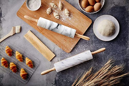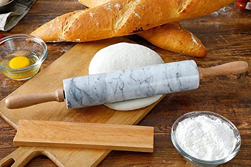 - 𝗠𝗢𝗗𝗘𝗥𝗡 & 𝗦𝗧𝗬𝗟𝗜𝗦𝗛 𝗗𝗘𝗦𝗜𝗚𝗡: Our rolling pin is made to traditional design and processed, being made from marble and solid Wood this item is also eco-friendly and BPA-free, PFOA-free, and PTFE-free.