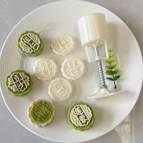Uqezagpa Chinese Mold with Stamp Festival Cake ABS Plastics Mold Hand Press Dessert Baking Moulds for Cooking Lover Baking Enthusiasts Essential