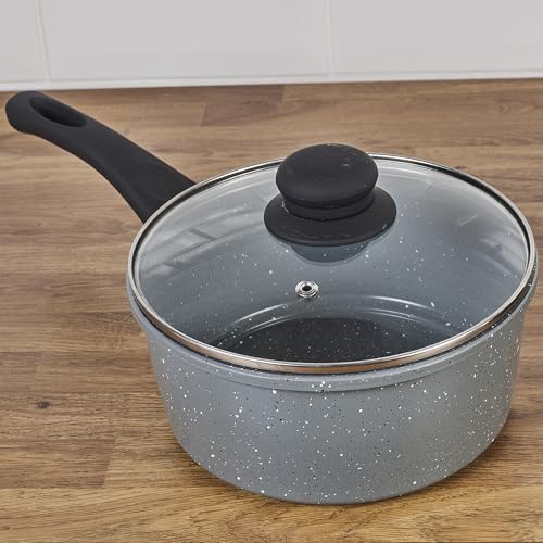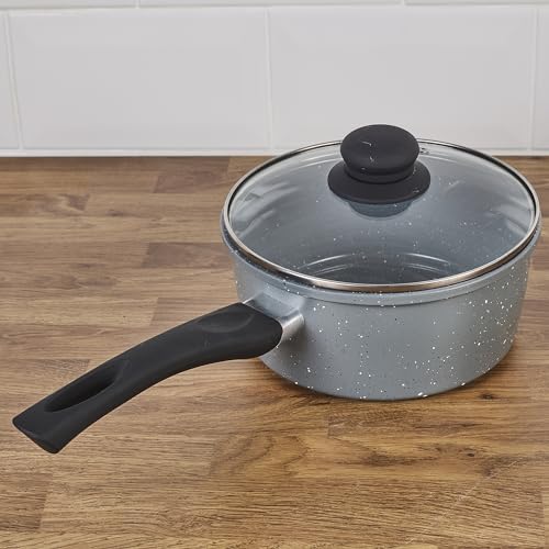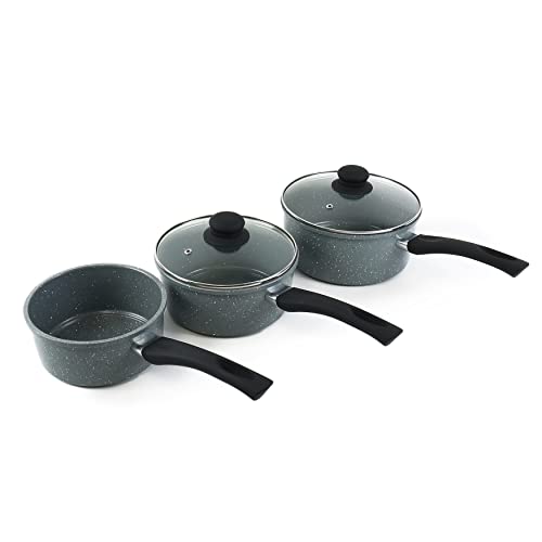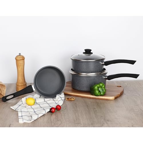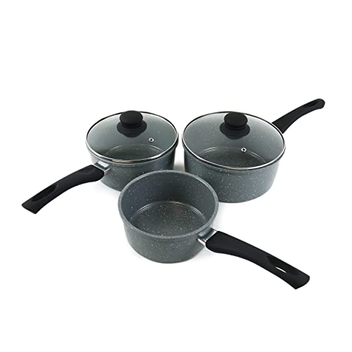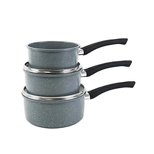 URBN-Chef 3 Pc Forged Carbon Steel Marble Grey Non-Stick Saucepan Pot & Pan Set