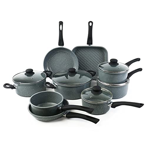 - Set Contains: One 16cm Milk Pan, 20cm Frying Pan, 24cm Frying Pan, 16cm Saucepan, 18cm Saucepan, 20cm Saucepan, 20cm Casserole Pot, 24cm Casserole Pot and a 27x25cm Square Grill Pan