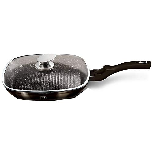 URBN-CHEF Non-Stick Shiny Black Grill Griddle Frying Pan Steak Cooking Skillet with Lid