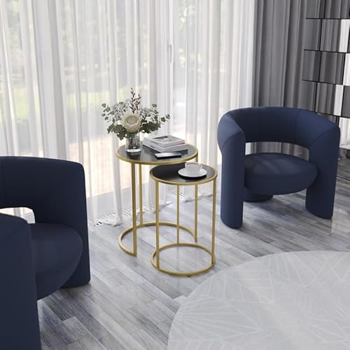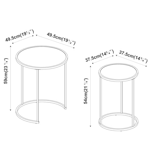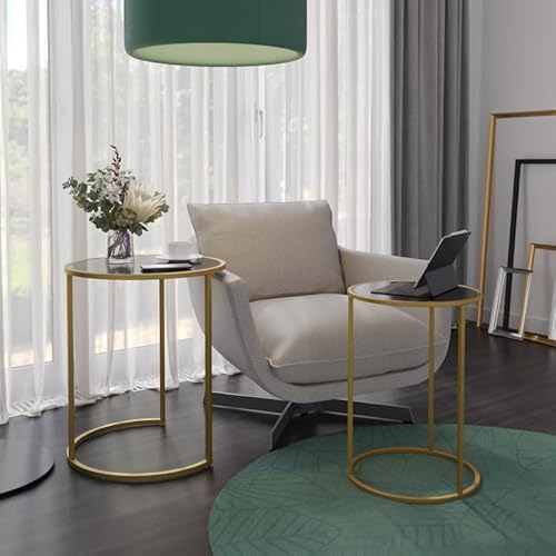 URBNLIVING 2 Piece Round Nesting Stacking Sofa Side Tables Set Tempered Glass Top Metal Leg Coffee Counter Modern Space Saving Accent Tea Top for Living Room Bedroom Office