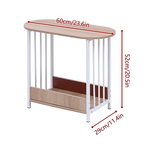 Urkitd Small End Table Oval Side Table for Small Spaces, Sofa Side Table for Living Room Balcony Reception, Slim Coffee Table Modern Nightstand with Storage for Bedroom Home Office Furniture, Maple