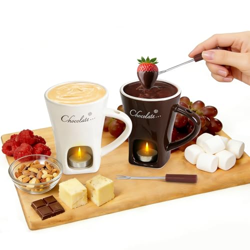 - Convenient Fondue Design: Built-in tea light holder keeps chocolate/butter warm and melted throughout your meal. Comes with a handy fork for grabbing fruits, cookies, or bread for dipping—no more solidification hassle, just smooth, delightful bites every time. (Tealight candles (shown in images) NOT included)