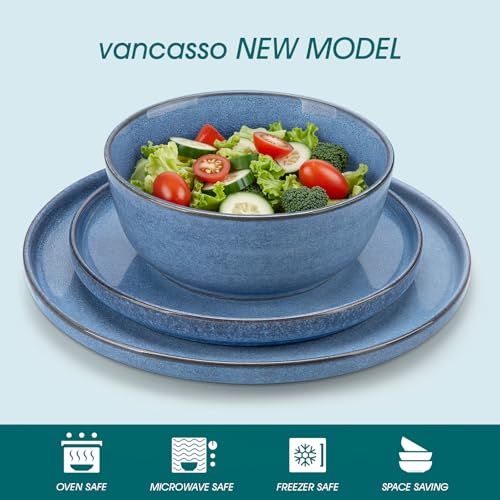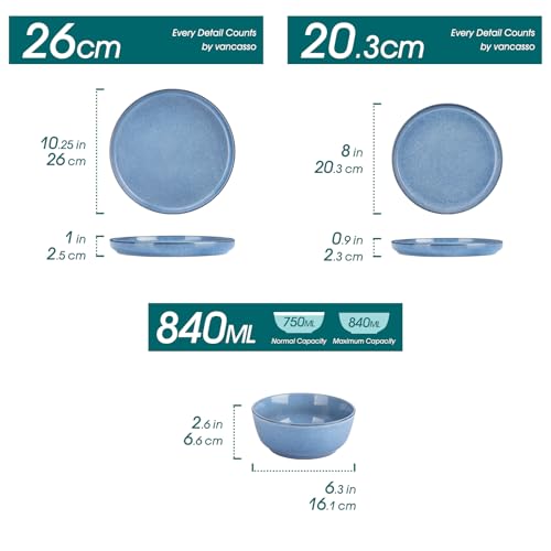 vancasso ANYA Plates and Bowls Set, 18 Piece Dinner Plates Set of 6, Include Ceramic Dinner Plates, Dessert Plates, and Cereal Bowls, Dishwasher and Microwave Safe, Blue
