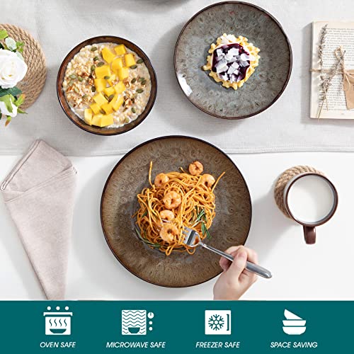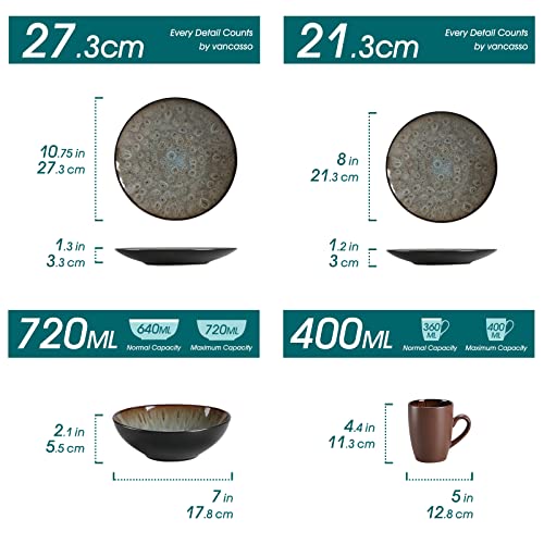 vancasso Bubble Brown Dinner Set, Reactive Glaze Dinnerware Tableware, 16-Piece Dinner Service with 11in Dinner Plate, 8in Dessert Plate, 7in Bowl and 380ml Mug, Service for 4