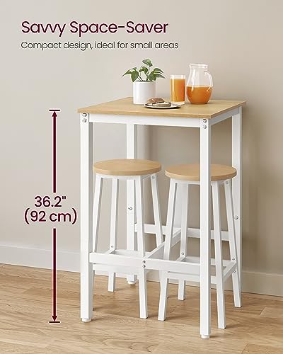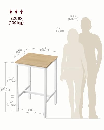 VASAGLE Breakfast Bar, Square Tall Bar Table, Heavy-Duty Steel Frame, 60 x 60 x 92 cm, Easy Assembly, for Kitchen Living Room, Modern Style, Oak Beige and White LBT025W09