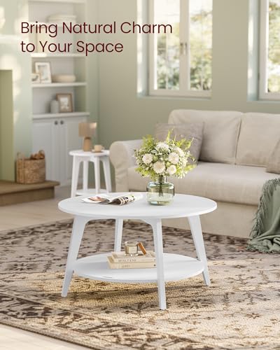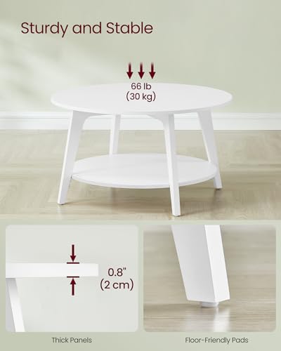 VASAGLE Coffee Table, 2 Tier Round Coffee Table with Storage, for Living Room, 80 x 45 cm, Easy to Assemble, Snow White LCT243W14