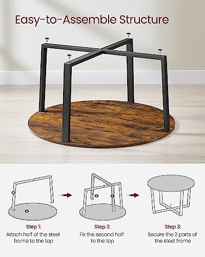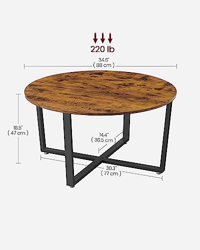 VASAGLE Round Coffee Table, Living Room Table, Industrial Style, Steel Frame, Easy Assembly, for Living Room, Bedroom, Rustic Brown and Black LCT88X