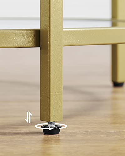 VASAGLE Round Side Table, Small Coffee Table, Tempered Glass End Table with Steel Frame, Bedside Table, Living Room, Balcony, Metallic Gold and Transparent LGT20G