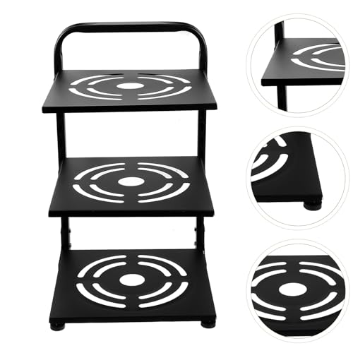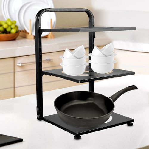 Veemoon Adjustable 3-Tier Carbon Steel Pot Rack Kitchen Pan Organizer Black Multi-Function Household Draining Rack for Cupboard Storage