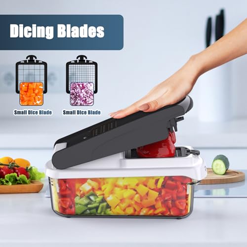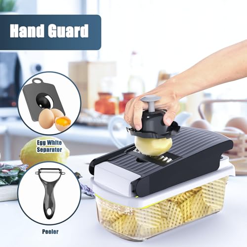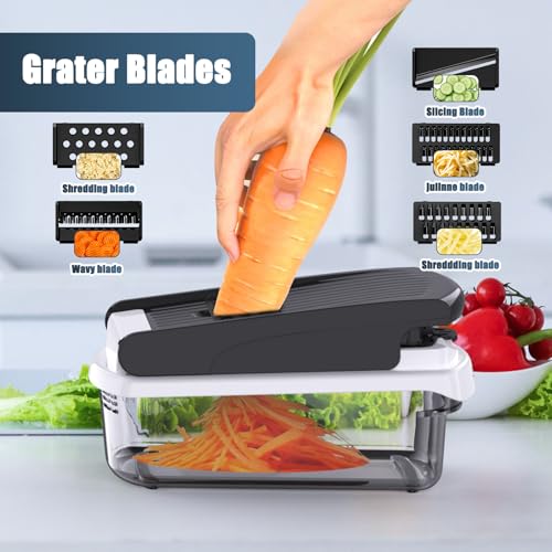 Vegetable Chopper – Mandoline Slicer, Onion Veggie Food Chopper with Container, Cucumber Potato Slicer, Salad Chopper Tool, 15 in 1 Kitchen Gadgets, Perfect for House Warming Gifts
