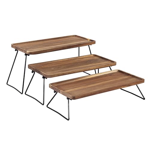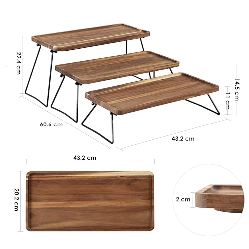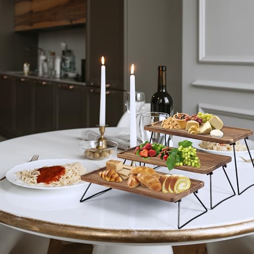Vencier 3-Tier Dessert Display Stand, Cupcake Stand & Towers Serving Tray Set, Portable Foldable Food Display Stand, Tiered Cheese Charcuterie Boards, Acacia Wood Trays for Outdoor, Party, Picnic