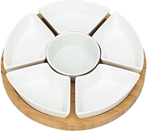 Vencier Lazy Susan Rotating, Revolving Dip Set Snack Bowl Serving Platter with 6 Ceramic Dishes Dips, Snacks & Appetisers