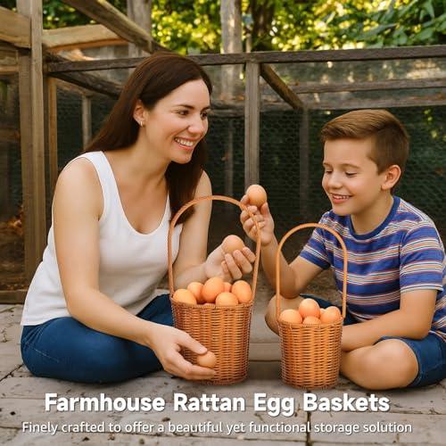 Vestamore Farmhouse Rattan Egg Baskets Set Of 2, Handwoven Large & Small Storage Baskets With Handles, Multi-Purpose Egg Collection, Egg Storage, Lightweight & Portable