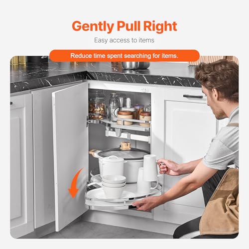 - Cabinet Blind Spot Storage: The kitchen blind cabinet organizer features a clever design that addresses kitchen corner blind spots, transforming hard-to-reach deep spaces into efficient storage areas and preventing wasted space. When your cabinet door opens to the left, choose the right rotation pull-out turntable.