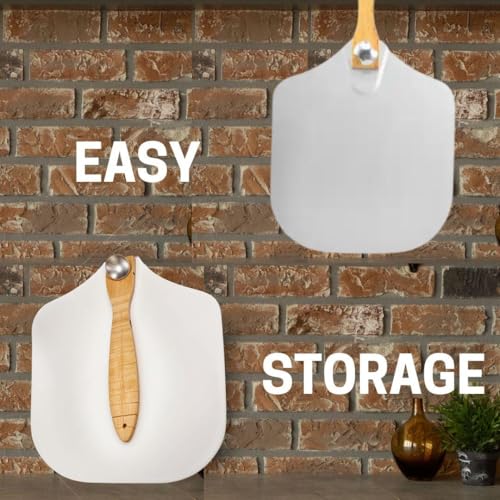 - 𝐄𝐫𝐠𝐨𝐧𝐨𝐦𝐢𝐜 𝐖𝐨𝐨𝐝𝐞𝐧 𝐇𝐚𝐧𝐝𝐥𝐞 𝐟𝐨𝐫 𝐂𝐨𝐦𝐟𝐨𝐫𝐭: The 29.5cm wooden handle offers a secure grip and keeps your hands away from heat. Folds easily, making this the ideal wooden pizza paddle for convenient storage.