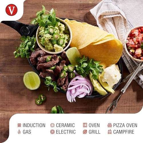 Victoria Fajita Skillet Griddle Pan Enameled Cast Iron Induction 25 x 18 cm, Suitable for Fire, Barbecue, Oven, Hob Ceramic, Gas, Cast Iron Skillet, Toxic Free Without PTFE or PFOA