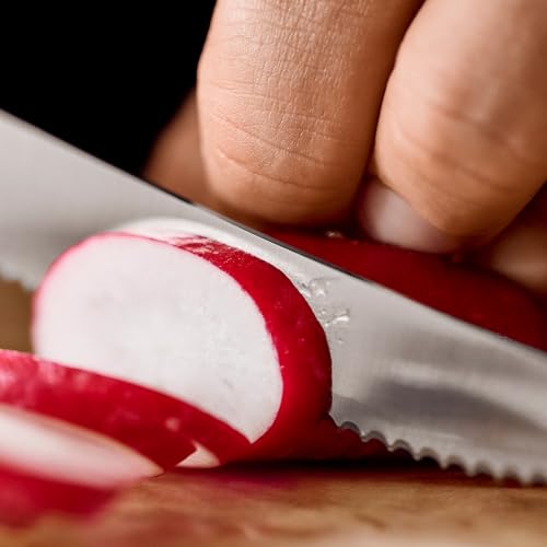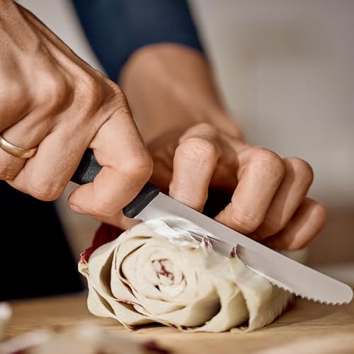 - PERFECT CUTTING: The serrated edge and rounded tip allow you to cut bread, rolls, croissants and other breakfast pastries with a soft crust without crushing or tearing the inside.