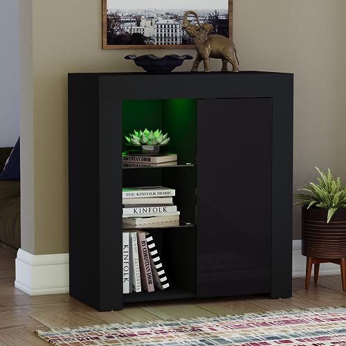 Vida Designs Azura 1 Door Modern LED Sideboard in Black, RGB Lights (Fade/Strobe Options Included), High Gloss