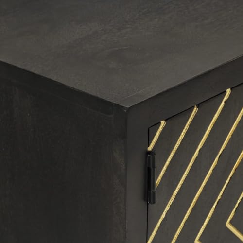 vidaXL Solid Mango Wood Sideboard – Durable Industrial-style Cabinet with Drawers and Compartment – Black and Gold Finish for Living Room Furniture