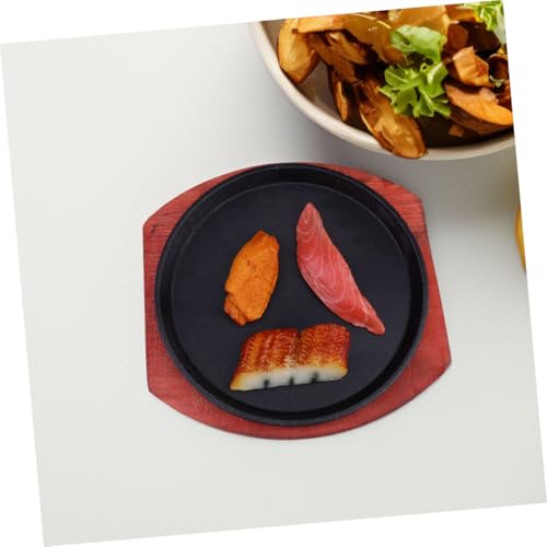 VILLCASE Cast Iron Steak Sizzling Plate 21cm Round Non-Stick Fajita Skillet with Wooden Serving Tray for Household BBQ and Restaurant Use