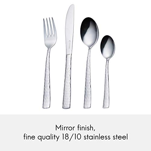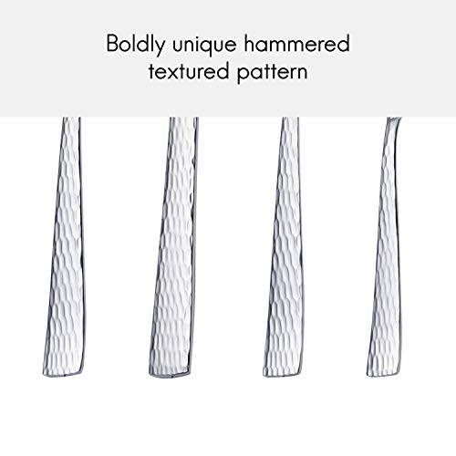 - CLASSIC CUTLERY | This flatware cutlery set is guaranteed to make a bold statement at any dining table. The 16 piece set has a hammered textured effect embossed on the square edged handles to bring a uniquely stylish touch to your dining table.