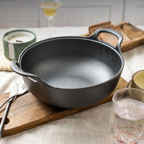 Volakebeing For Cast Iron Stew Pot 20-30cm with Double Handles for Soup, Frying and Braising, Uncoated Non- Cooking For, Thickened Heat Retention(27cm Single pot)