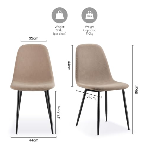 - EASY ASSEMBLY: Featuring a quick assembly process with easy-to-follow instructions, simply attach the legs. Each upholstered dining chair measures H86 x W44 x D54cm, ideal for any space.