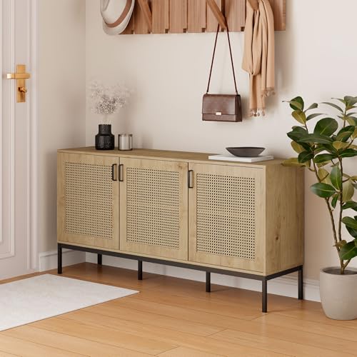 - SCANDI-BOHO CHIC: Add a touch of bohemian flair to your home with the Vonhaus Lena sideboard. The woven rattan effect doors add subtle texture, bringing a softness to your living room, bedroom, or hallway.