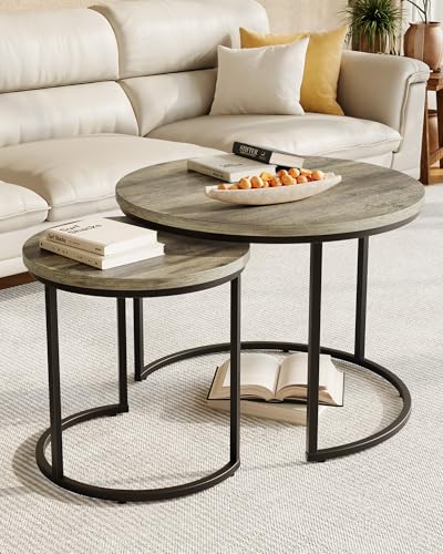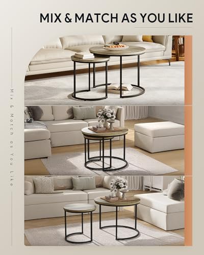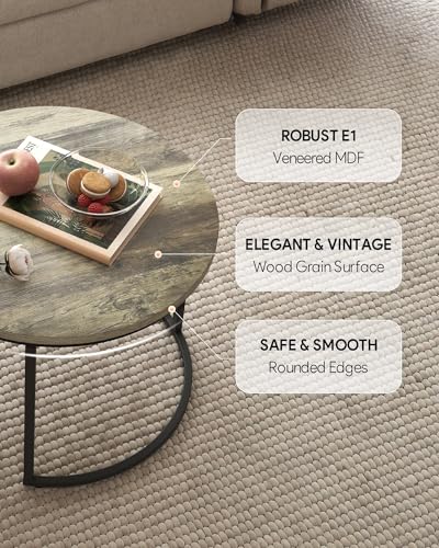 - 𝐑𝐨𝐮𝐧𝐝 𝐧𝐞𝐬𝐭𝐢𝐧𝐠 𝐭𝐚𝐛𝐥𝐞𝐬: This coffee table set includes 60 cm and 40 cm diameter tables that complement any home decor from modern minimalist to rustic farmhouse and offer an ingenious space-saving addition to any living room, bedroom, or entryway