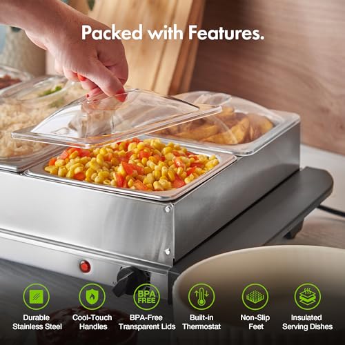 - PORTABLE: Thanks to the 2 cool touch handles on either side, you can carry your tabletop buffet server from the kitchen counter to the table with ease, keeping your dinner guests satisfied.