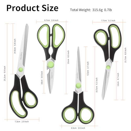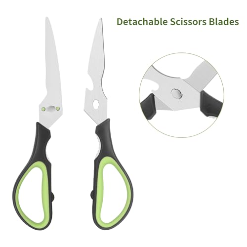 Vutyvve Kitchen Scissors, Stainless Steel Blades Soft Handle, Multifunctional Kitchen Scissors Set, Black/Green, 4 Piece Set