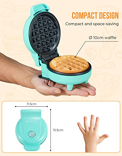 Waffle Maker Mini Small Compact Design, Breakfast Waffle Iron Machine Nonstick Coating, Snack Chaffle Hash Browns Round 4 Inch 550W, Blue BLAZANT