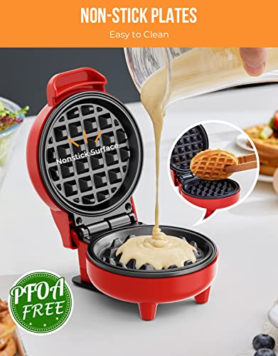 Waffle Maker Mini Small Compact Design, Breakfast Waffle Iron Machine Nonstick Coating, Snack Chaffle Hash Browns Round 4 Inch 550W, Red BLAZANT