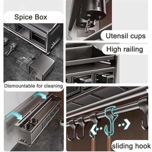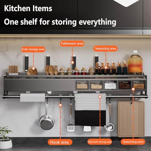 Wall Mount Spice Rack nizer – 23In Hanging Spice Shelf with Seasoning Storage Box Paper Towel Holder & Hooks – Kitchen Spice nizer for Easy Access & Clutter-Free Cooking