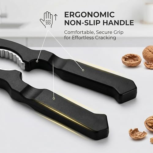 Ergonomic Walnut Cracker Tool with High-Leverage Handles | Premium Zinc Alloy for Pecans, Almonds, and Hazelnuts | Durable Non-Slip Kitchen Gadget in Black