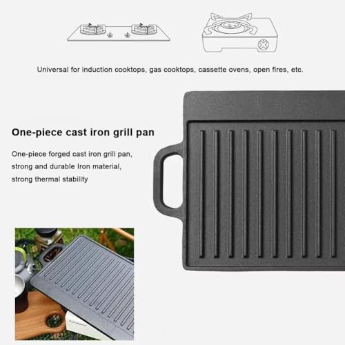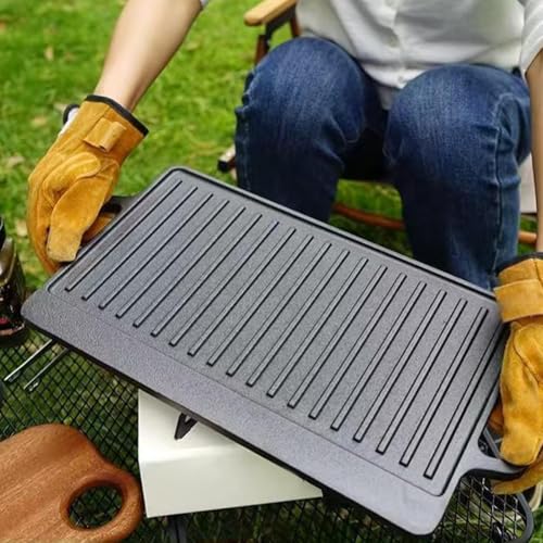 WANLiber Cast Iron Griddle Plate Double Sided Grill Pan w/Double Handles Griddle Pan for Steaks Broil Bread Pancakes Vegetables