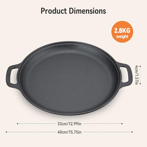 Warmiehomy Cast Iron Griddle Pan,33cm Round Non-Stick Grill Pan,BBQ Skillet,Frying Pan with 2 Handles for Gas, Electric, Induction & Oven,Flat Surface