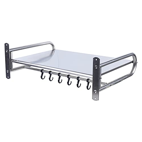 WDZCZDoo Wall Mount Pot Pan Racks, Wall Mount Microwave Oven Shelf Rack for Kitchen Home, Spice Rack Wall Mounted, Kitchen Wall Shelf, Utensil Rack 6 Hooks