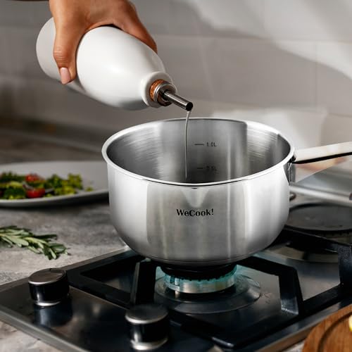 Wecook! Saucepan 12cm/0,7L, Stainless Steel Nonstick Sauce Pot for Induction, Gas and Electric Hobs, Cooking Pot with Spout and Practical Measuring Scale.