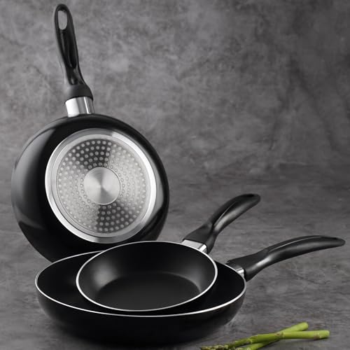 - Includes 3 pressed aluminium pans in elegant black (Ø16Ø20Ø24cm), with non-stick black interior.