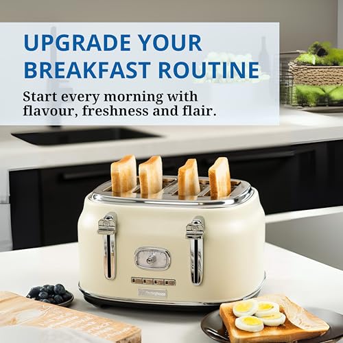 Westinghouse Retro 4-Slice Toaster – Six Adjustable Browning Levels – with Self Centering Function & Crumb Tray – Including Warm Rack for Bread, Bagels, Sandwiches, & Croissants – White